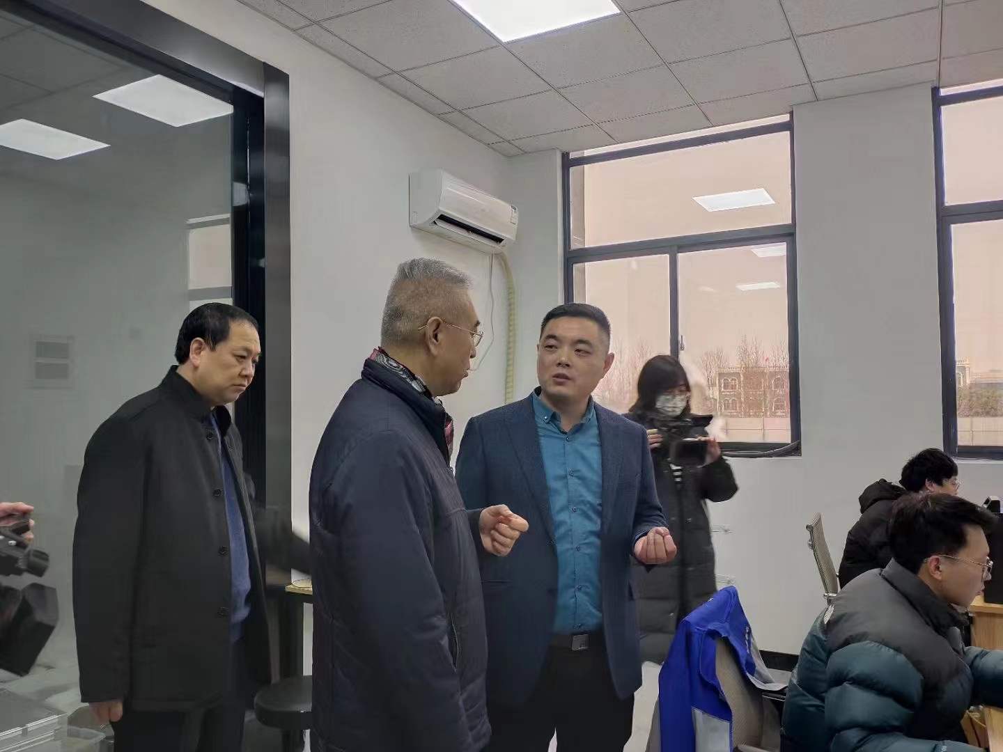 授牌會(huì)議結(jié)束后領(lǐng)導(dǎo)們?cè)谔┌驳旅蓝麻L(zhǎng)秦大斌先生的陪同下參觀公司指導(dǎo)工作,董事長(zhǎng)秦大斌先生詳細(xì)介紹公司的熱工計(jì)量產(chǎn)品(熱電偶/熱電阻自動(dòng)檢定系統(tǒng)及群爐控制、干體式溫度校驗(yàn)爐/干體爐、黑體輻射源/黑體爐、溫濕度檢定箱、溫濕度均勻性自動(dòng)測(cè)試系統(tǒng)、熱電偶檢定爐、熱電偶退火爐、高精度恒溫槽等);壓力計(jì)量產(chǎn)品(手動(dòng)壓力校驗(yàn)臺(tái)、便攜式氣壓源、數(shù)字壓力表、智能壓力校驗(yàn)儀等);長(zhǎng)度計(jì)量產(chǎn)品(鋼直尺檢定裝置,鋼卷尺檢定裝置,光柵指示表檢定儀,水平尺檢定儀等)、以及公司企業(yè)文化和產(chǎn)業(yè)前景,得到了領(lǐng)導(dǎo)們的高度贊許與認(rèn)同。