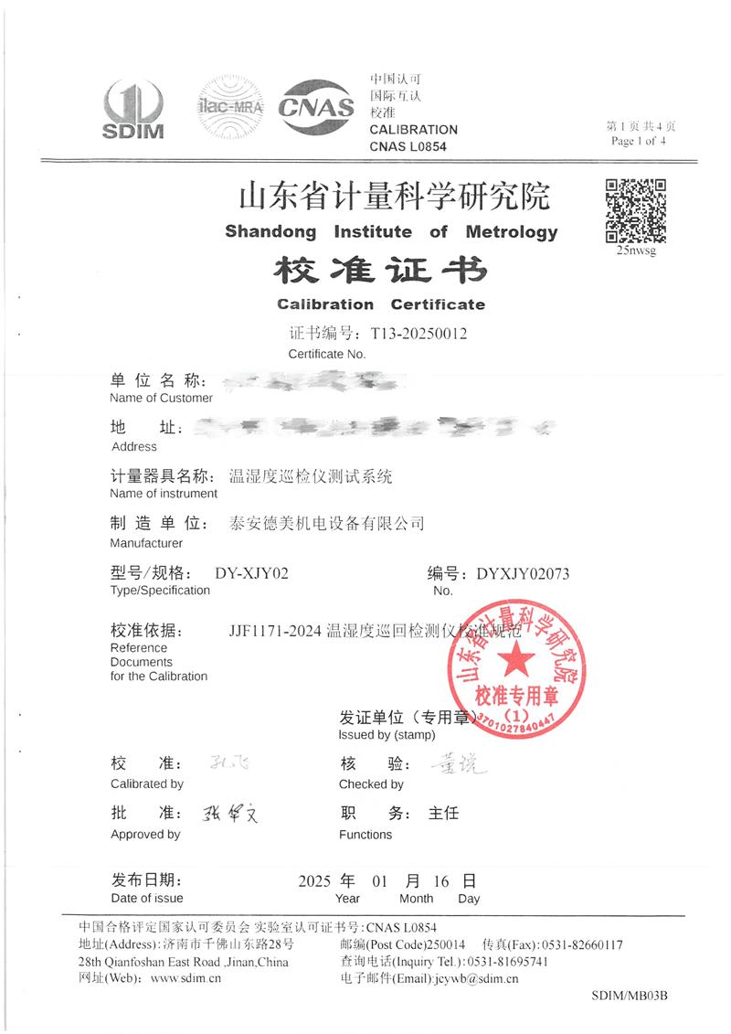 溫濕度巡檢儀測試系統(tǒng)校準證書 2025-1-20 本文被閱讀 5306 次