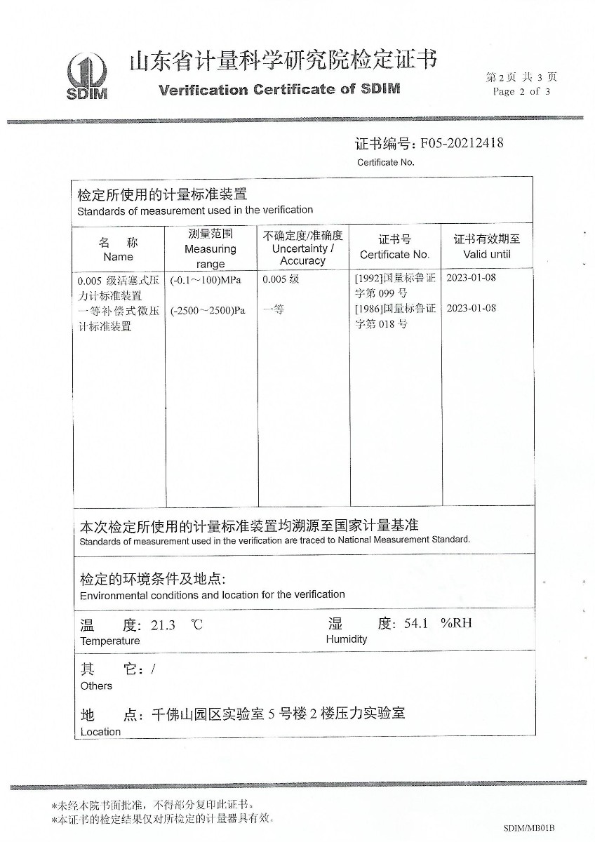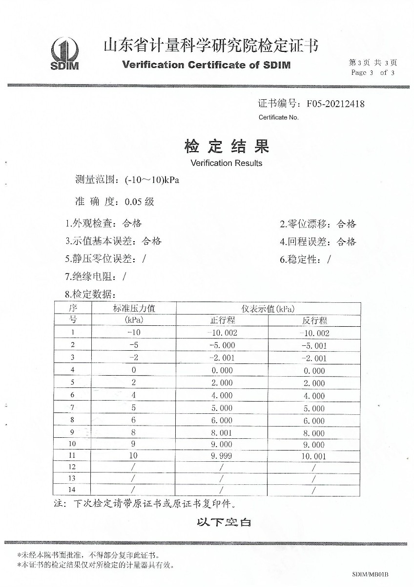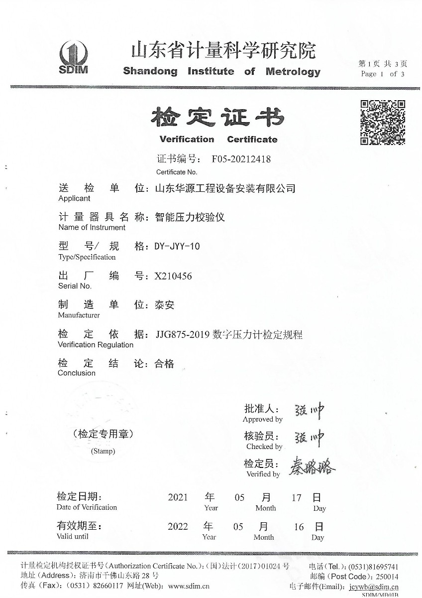 | 上一條:山東華源工程設(shè)備安裝有限公司-智能壓力校驗儀X210455 | 下一條:高精度制冷恒溫槽(-80~100℃)校準(zhǔn)證書 |