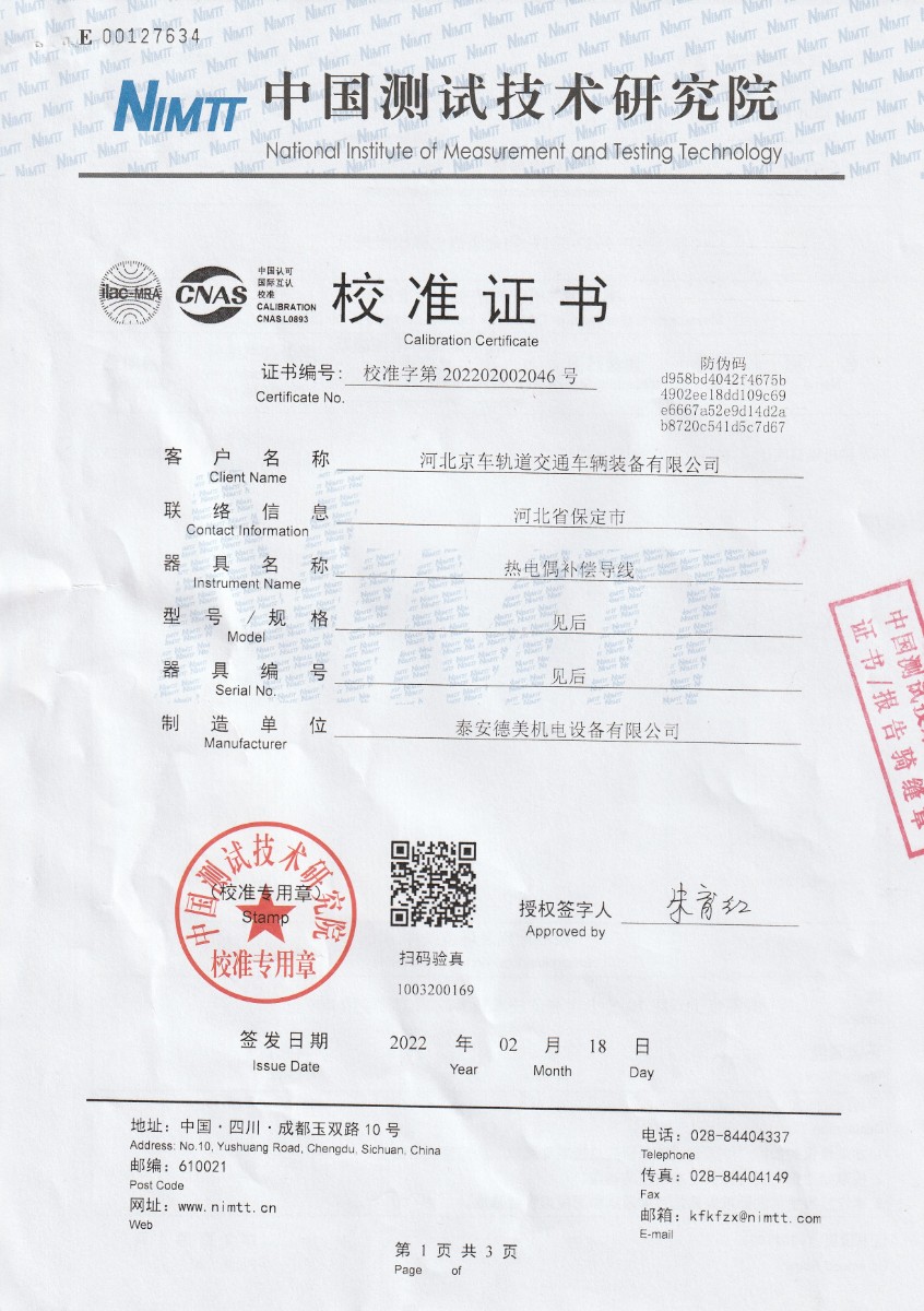 河北京車軌道交通車輛裝備有限公司-熱電偶補償導線 2022-2-24 本文被閱讀 15696 次