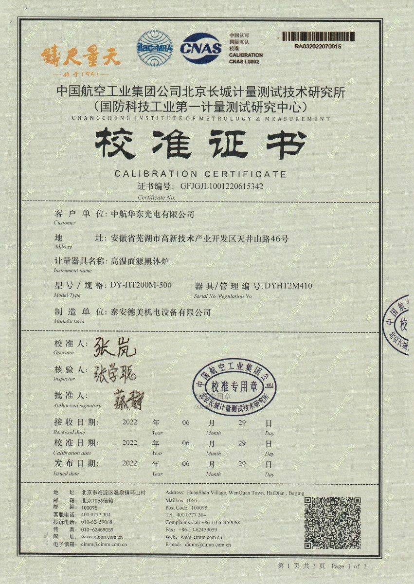 | 上一條:中國航空工業(yè)集團(tuán)公司沈陽空氣動力研究所-黑體輻射源 | 下一條:溫濕度檢定箱校準(zhǔn)證書 |