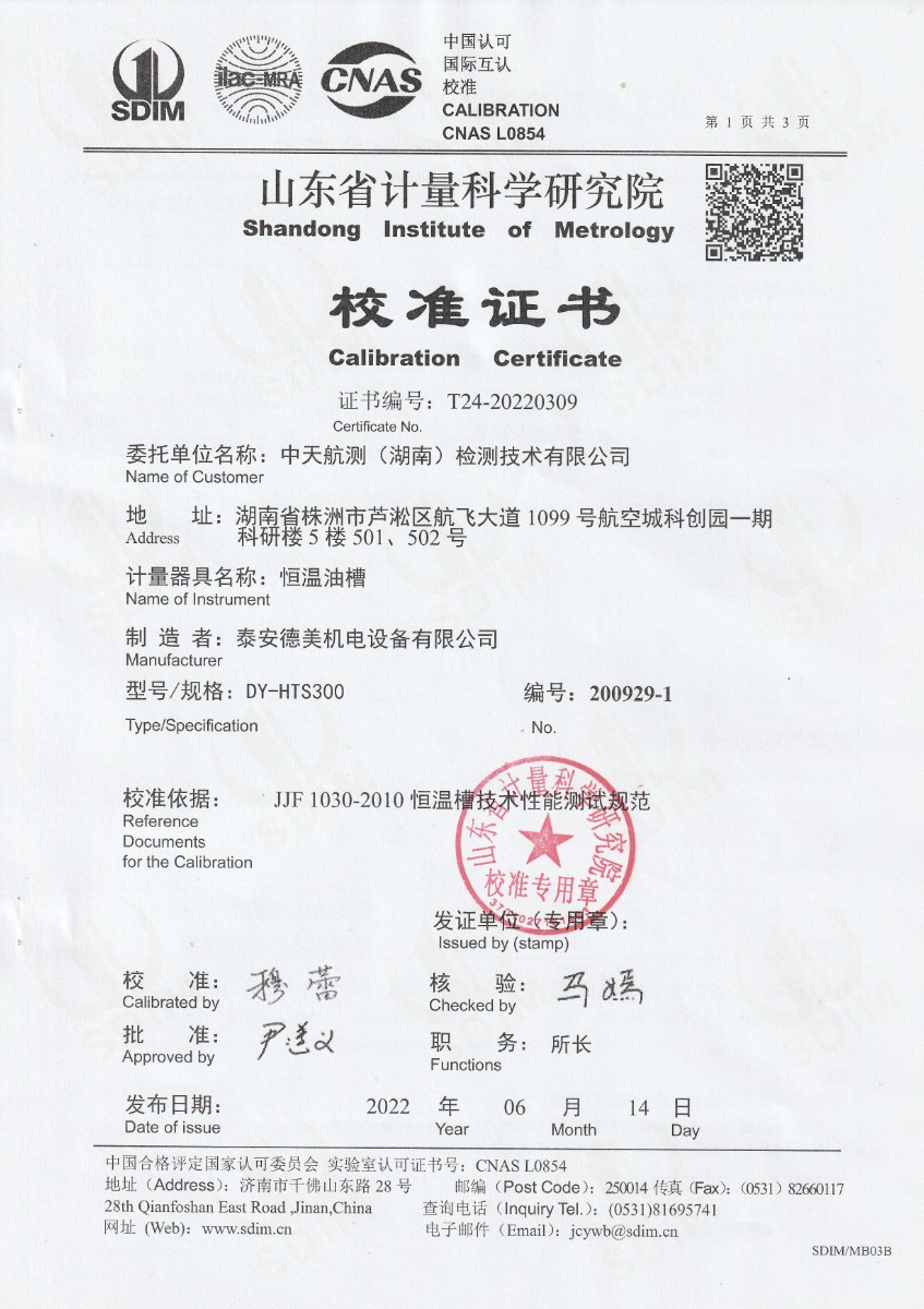 中天航測(湖南)檢測技術有限公司-恒溫油槽 2022-7-15 本文被閱讀 13422 次