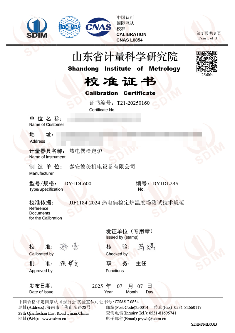 | 上一條:制冷恒溫槽(-40-100℃)校準(zhǔn)證書 | 下一條:便攜式干體爐(-30-150℃)校準(zhǔn)證書 |