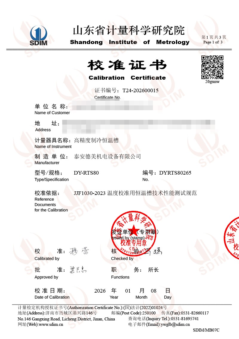 | 上一條:高精度制冷恒溫槽(-30~95℃)校準(zhǔn)證書 | 下一條:中溫面源黑體爐-校準(zhǔn)證書 |