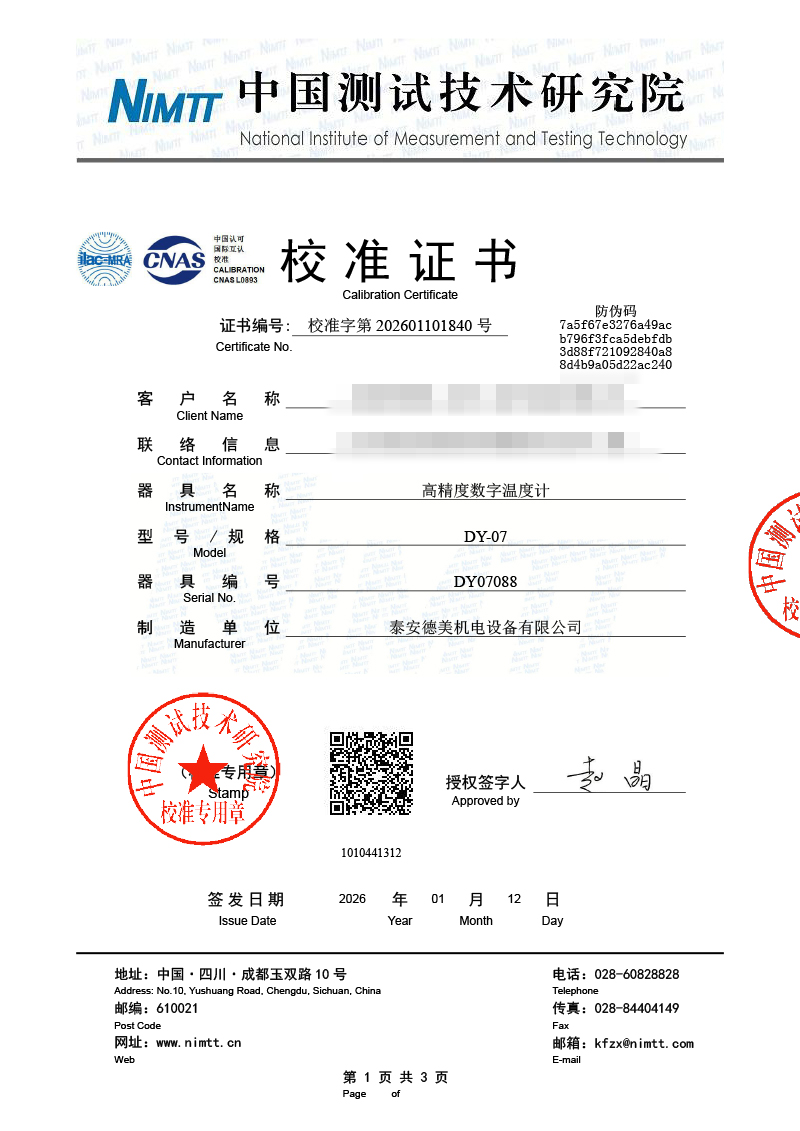 高精度數(shù)字溫度計(jì)-校準(zhǔn)證書 2026-1-26 本文被閱讀 681 次