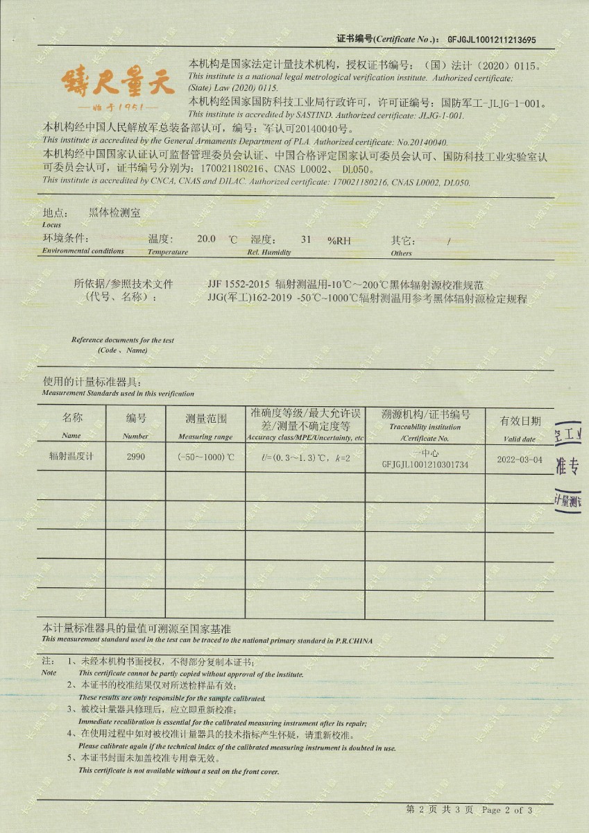 上一條:晶科能源(海寧)有限公司-溫濕度檢定箱下一條:超低溫面源黑體爐(-40-80℃)校準(zhǔn)證書