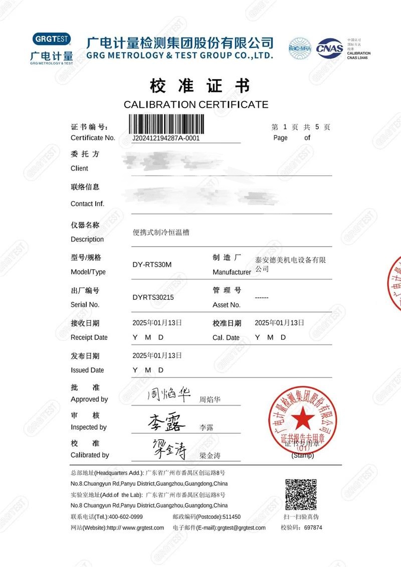 | 上一條:便攜式制冷恒溫槽(-30-105℃)校準(zhǔn)證書 | 下一條:便攜式干體爐(-30-150℃)校準(zhǔn)證書 |
