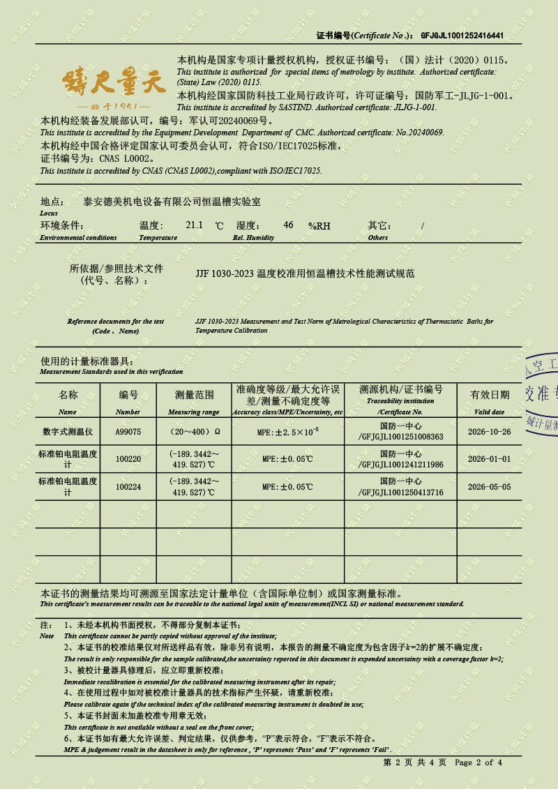 高精度制冷恒溫槽(-80~100℃)校準(zhǔn)證書(shū)