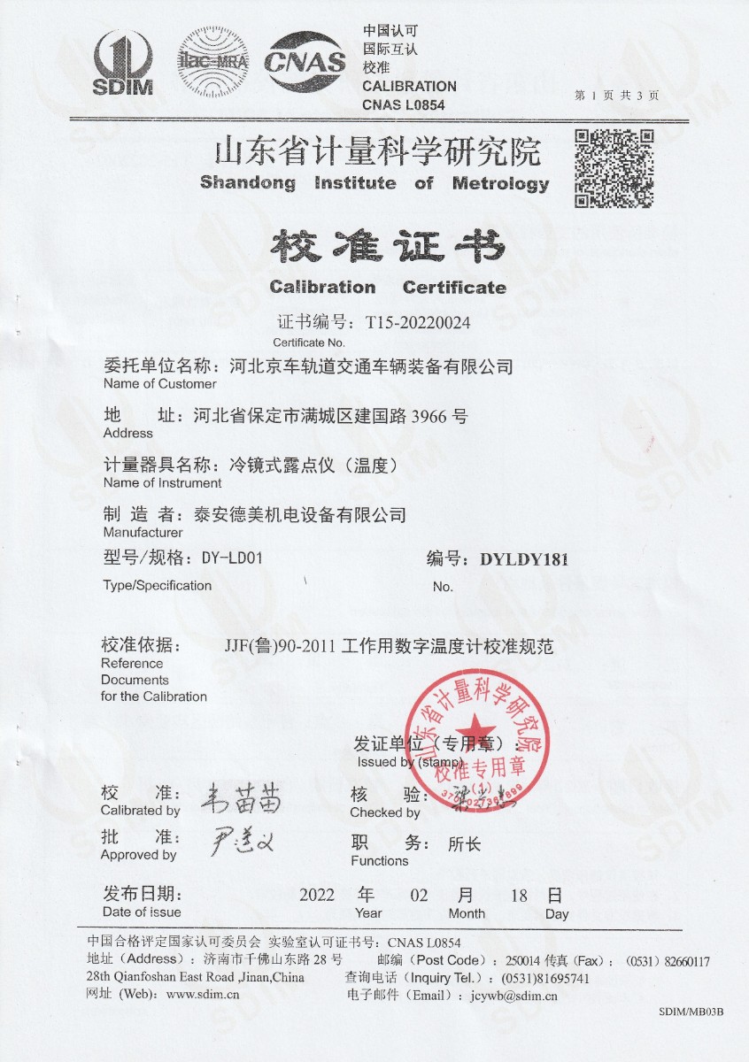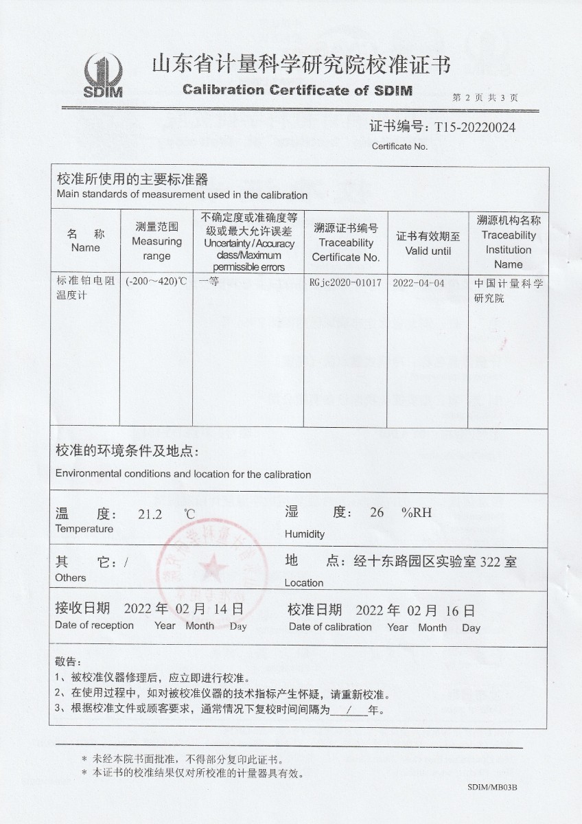 | 上一條:鄭州賽奧電子股份有限公司-干體爐DYGT150246 | 下一條:便攜式溫濕度檢定箱(-10-60℃)校準證書 |