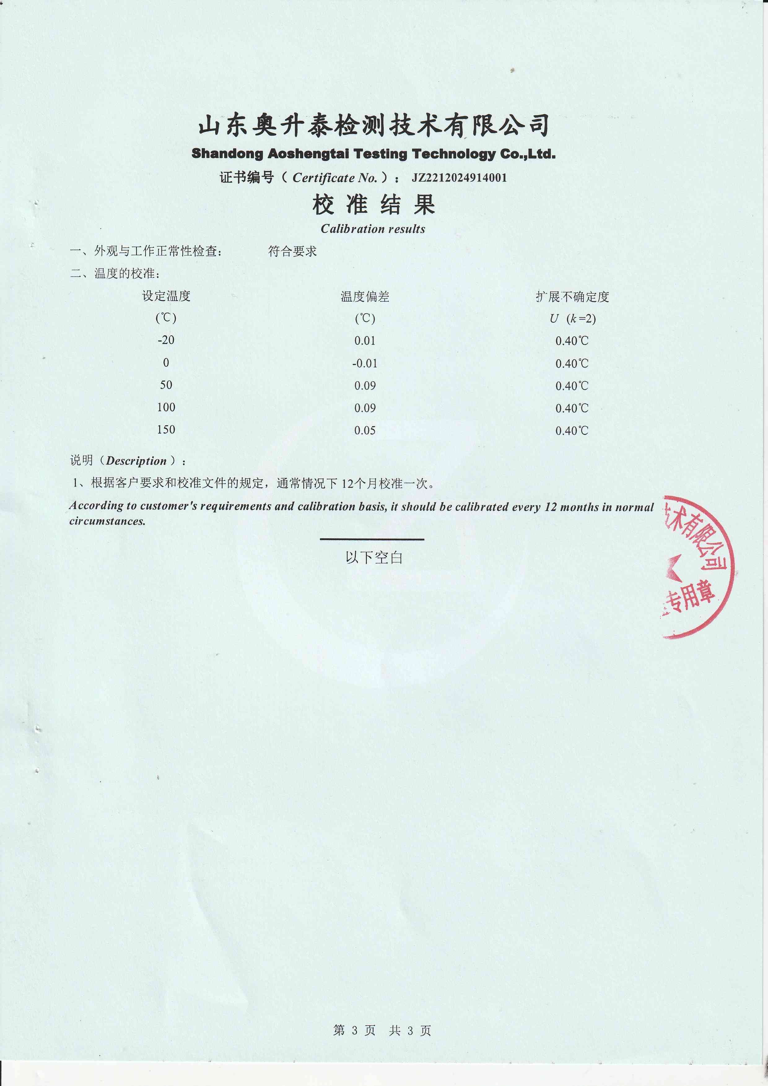 | 上一條:北京索英電氣技術(shù)有限公司 干體溫度校驗(yàn)爐 | 下一條:超低溫面源黑體爐(-40-80℃)校準(zhǔn)證書 |