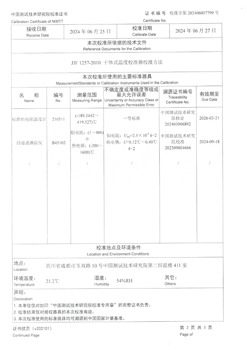 | 上一條:高溫干體爐(300~1200℃)校準(zhǔn)證書 | 下一條:便攜式干體爐(-30-150℃)校準(zhǔn)證書 |