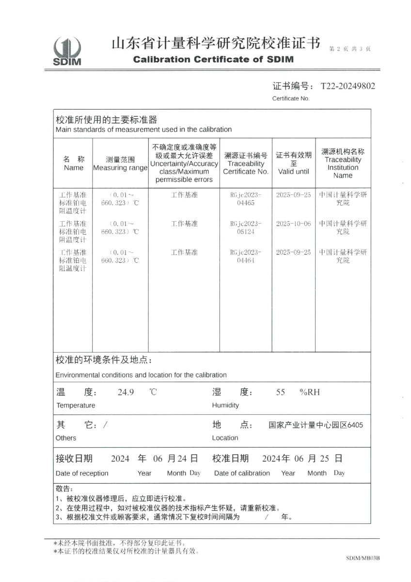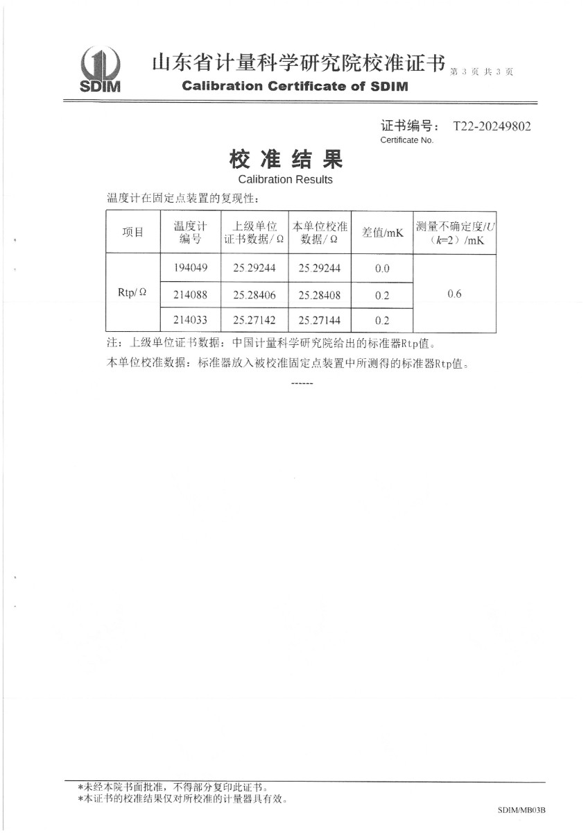 | 上一條:高精度數(shù)字溫度計(jì)(30~150℃)校準(zhǔn)證書(shū) | 下一條:超低溫面源黑體爐(-40-80℃)校準(zhǔn)證書(shū) |