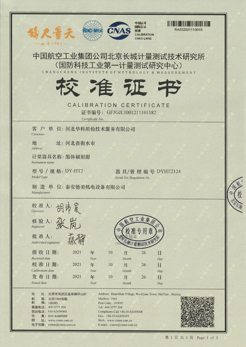 | 上一條:河北華科質(zhì)檢技術(shù)服務(wù)有限公司-黑體輻射源(DY-HT1) | 下一條:便攜式干體爐(-30-150℃)校準(zhǔn)證書 |