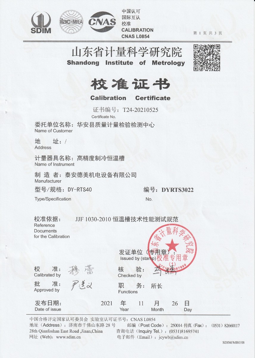 上一條:四川易豐國際計(jì)量檢測有限公司-黑體爐下一條:便攜式干體爐(-30-150℃)校準(zhǔn)證書