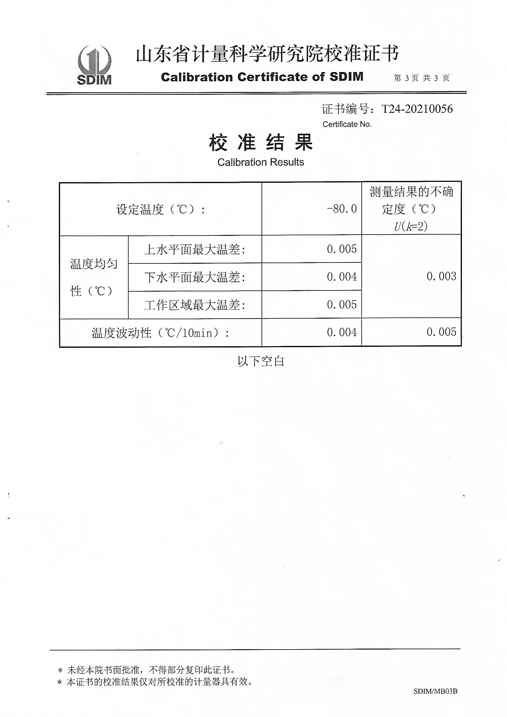 | 上一條:黑龍江華馨檢測科技有限公司-黑體輻射源 | 下一條:高精度制冷恒溫槽(-80~100℃)校準(zhǔn)證書 |