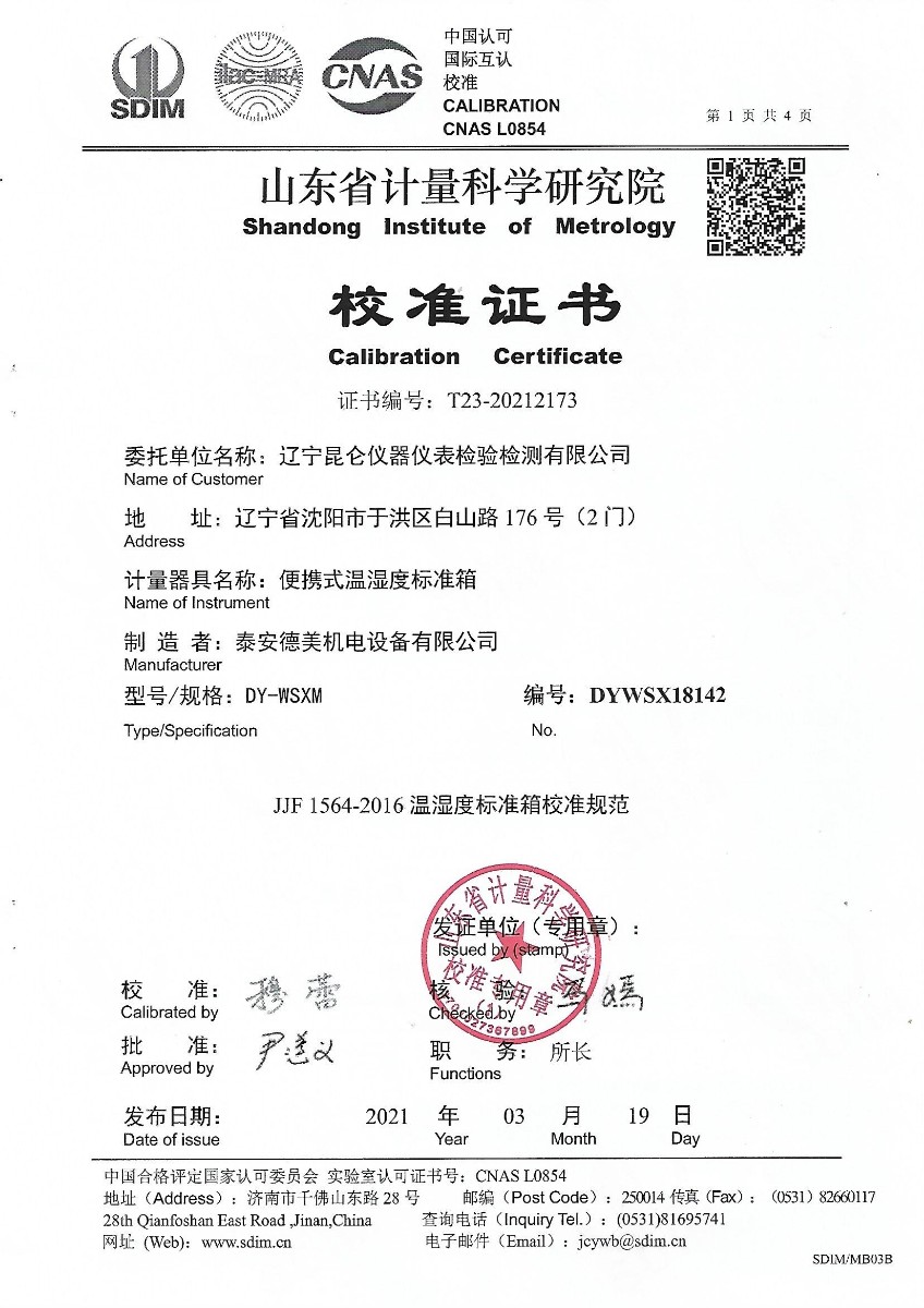 | 上一條:北京市基典恒校準(zhǔn)技術(shù)研究所有限公司-溫濕度檢定箱 | 下一條:溫濕度檢定箱(-5~65℃)校準(zhǔn)證書 |