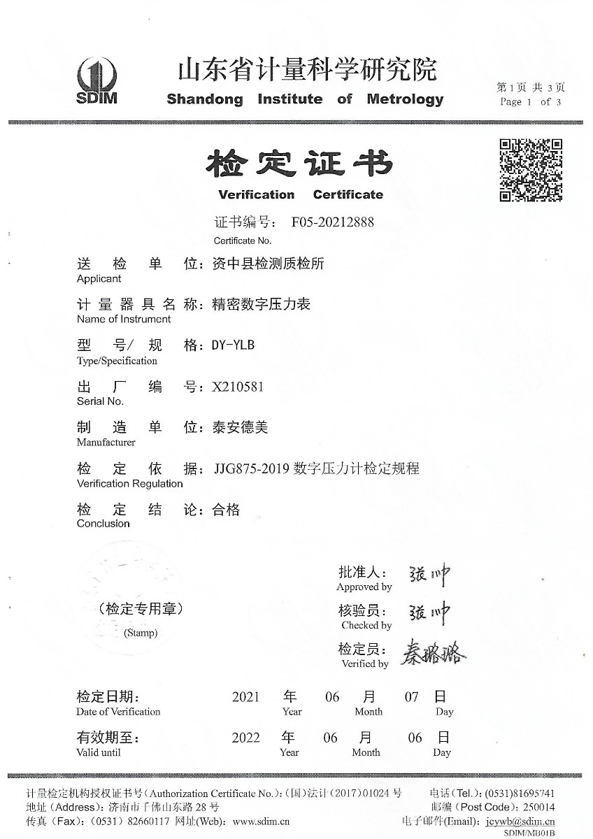 資中縣檢測質(zhì)檢所-精密數(shù)字壓力表 2021-6-10 本文被閱讀 15673 次