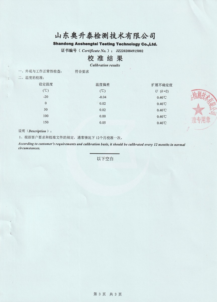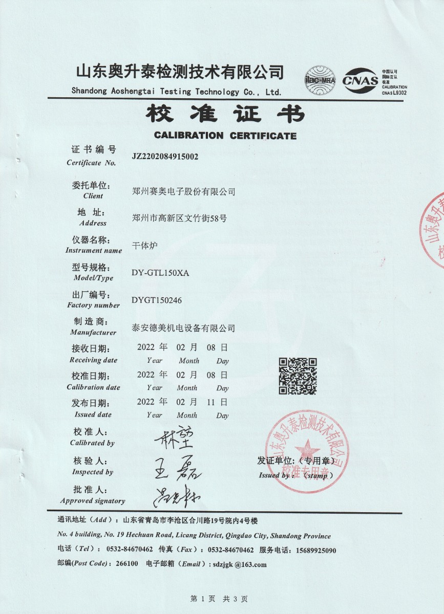 | 上一條:鄭州賽奧電子股份有限公司-干體爐DYGT150245 | 下一條:零點(diǎn)恒溫器校準(zhǔn)證書 |